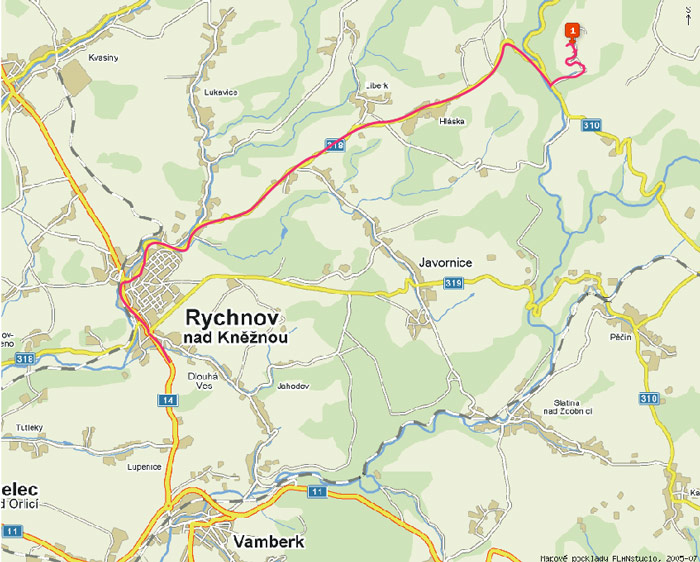 Nabízíme podrobnou mapku z Rychnova nad Kněžnou