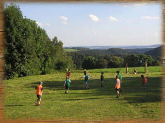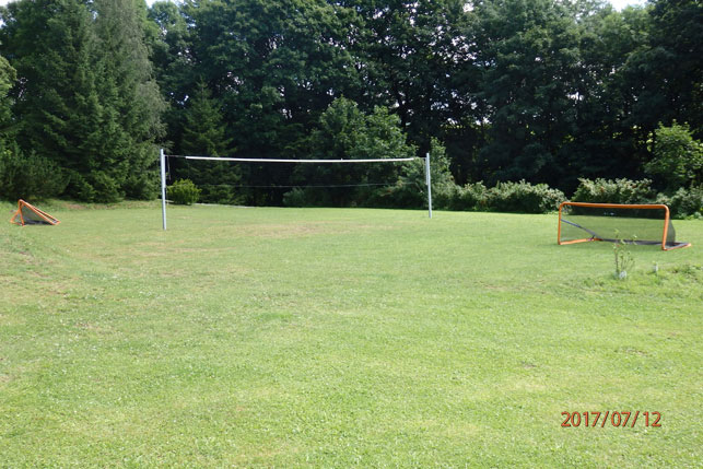 travnatém hřišti, volejbalovém hřišti, pískovišti i v bazénu.