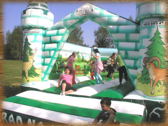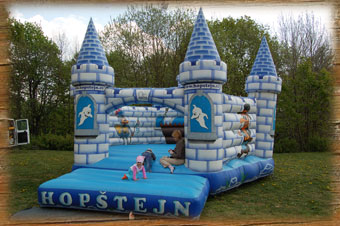 Děti se mohou vyřádit na dřevěném hradě, skákacím hradě,